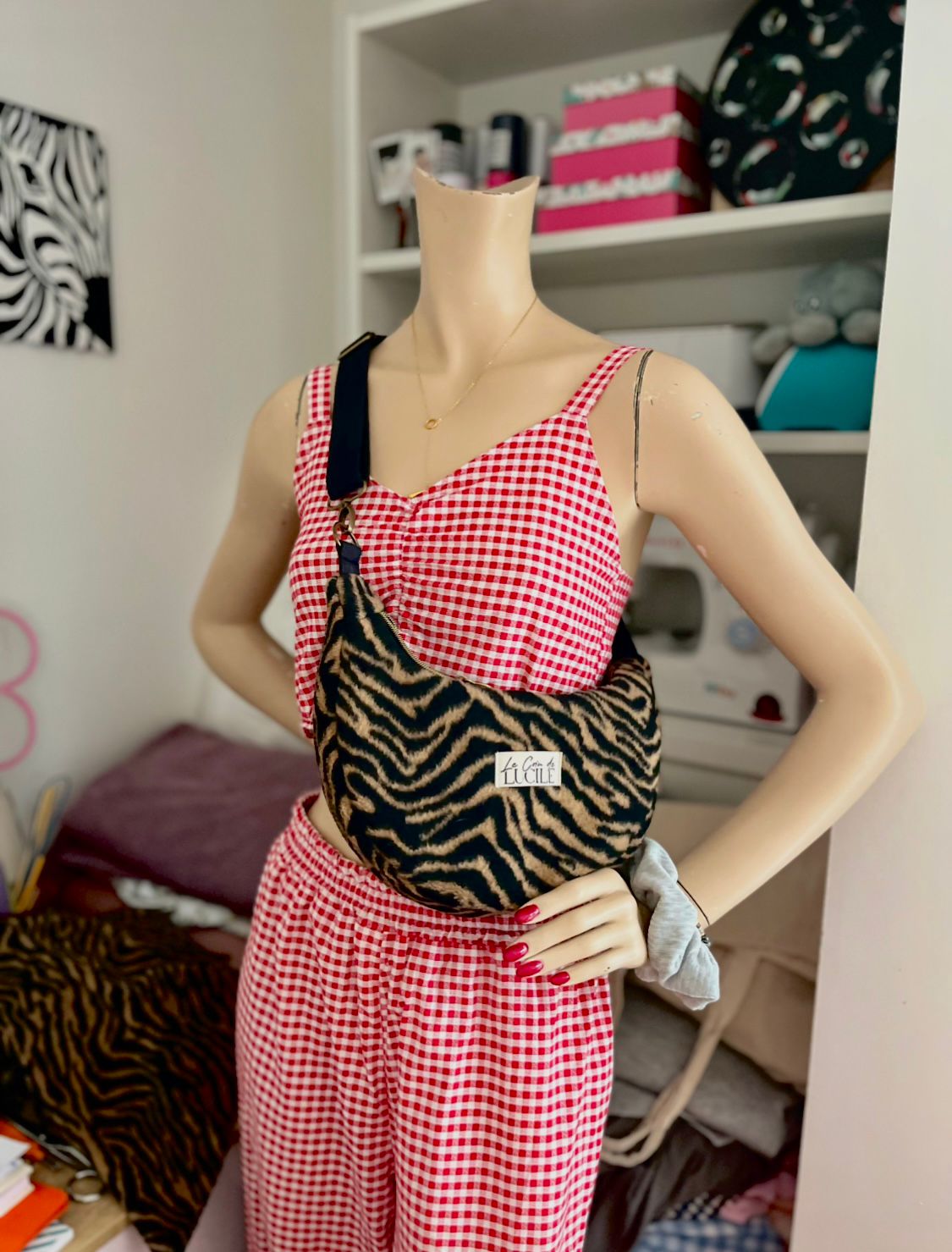 Je mets un point d’honneur à créer des pièces uniques, faites à la main et avec amour. Lorsque je peux, je redonne vie à des matières et tissus de seconde main dénichés en brocante, sur Vinted ou dans des ressourceries.