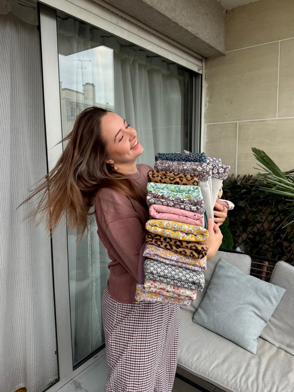 Dans mon petit appartement en région parisienne, entre tissus, fils et boules à facettes, je couds des pièces uniques, faites à la main. Entre rigueur scientifique et imagination sans limite, j’ai trouvé mon équilibre, un coin à moi, où chaque création raconte un petit bout de mon histoire.